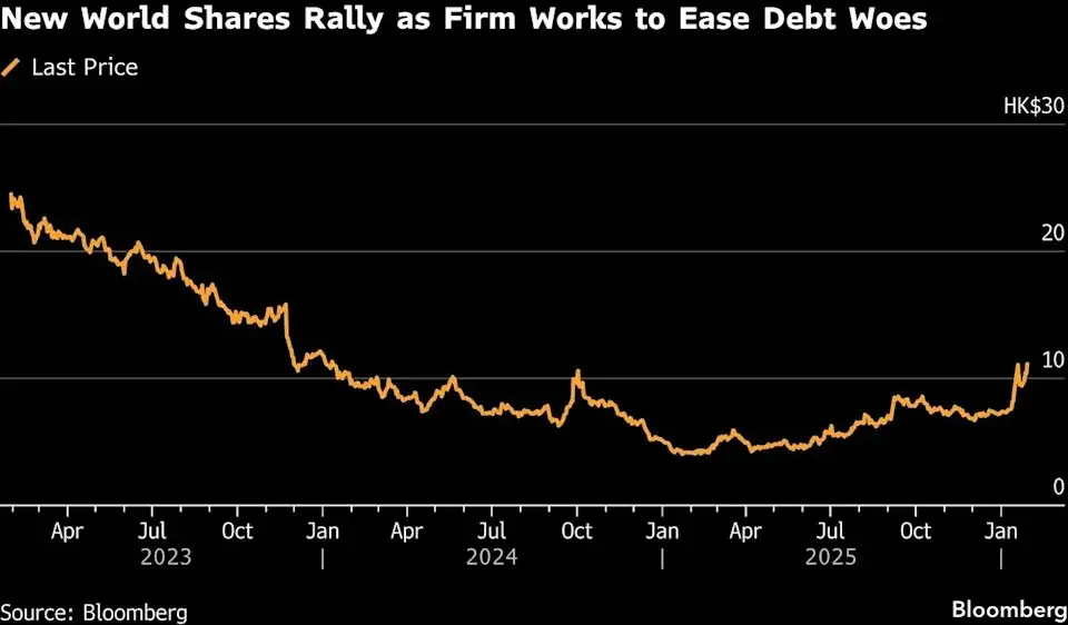New World had a market capitalisation of around HK $28 billion at the end of Hong Kong trading on Thursday. Its shares have jumped more than 50% this month as optimism grows about a turn-around, although they are still down more than 90% from the all-time high set in 1997.