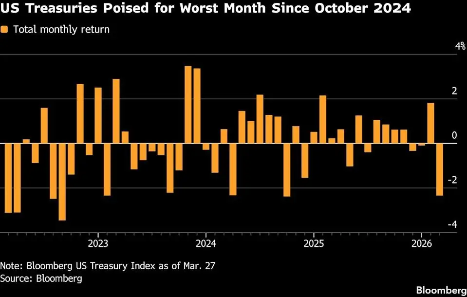 As oil pushes over $110 a barrel and the conflict shows little signs of ending, traders have largely focused on the inflation shock. That has sent the US Treasury market toward the deepest monthly loss since October 2024 as investors brace for the possibility that the Federal Reserve will push interest rates higher before the year is out.