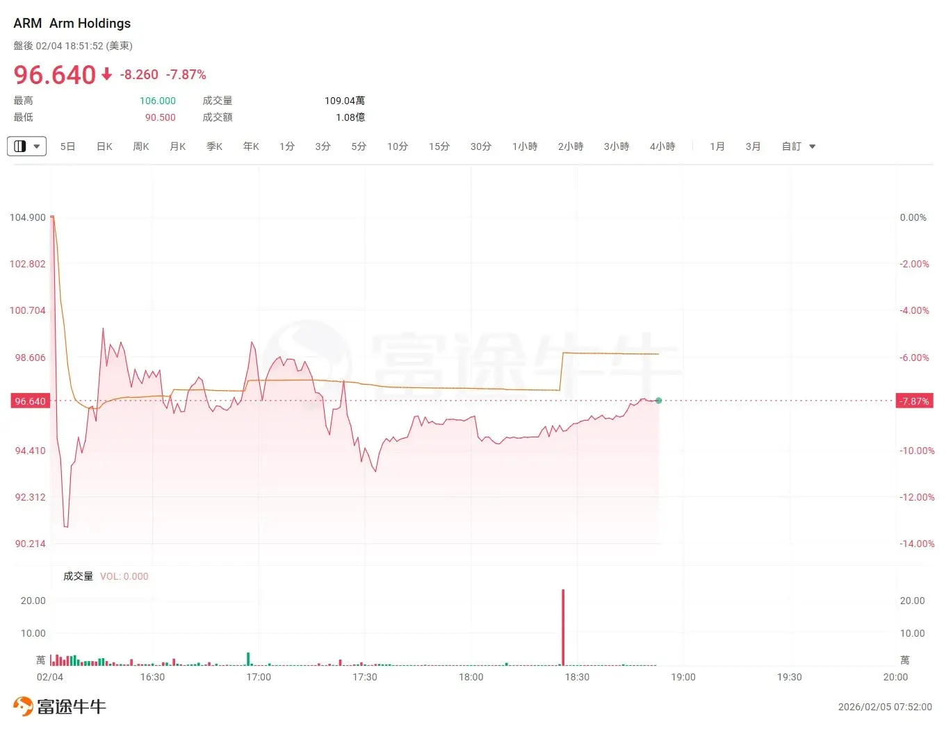 财报发布后,Arm 股价在盘后交易中大跌逾 8%。