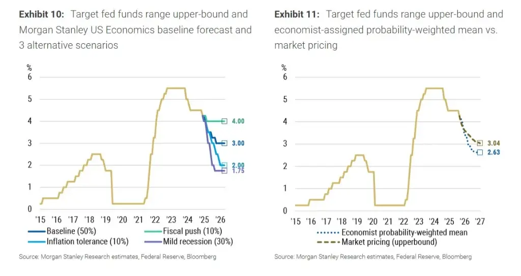 报告分析认为,市场对未来美联储政策路径的定价,应更倾向于比基准情景更“鸽派”的路径。报告观点认为,随着市场为美联储更低的终端利率进行定价,美国国债收益率应会继续下行。