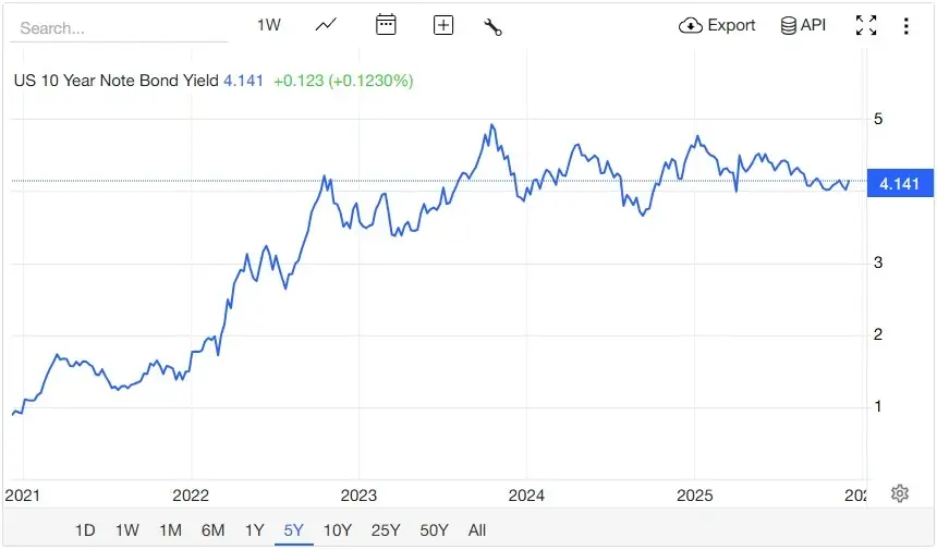 然而,作为美国消费者和企业借贷成本主要基准的关键美债收益率却根本没有下降。自美联储开始放松货币政策以来,10 年期美债收益率已上升近半个百分点至 4.1%,30 年期美债收益率更是上涨超过 0.8 个百分点。